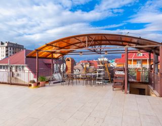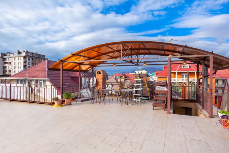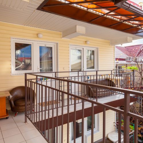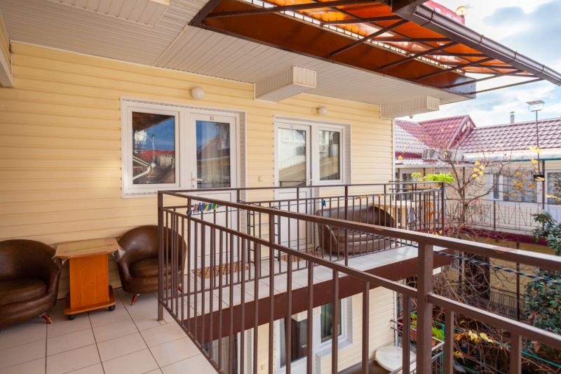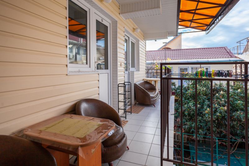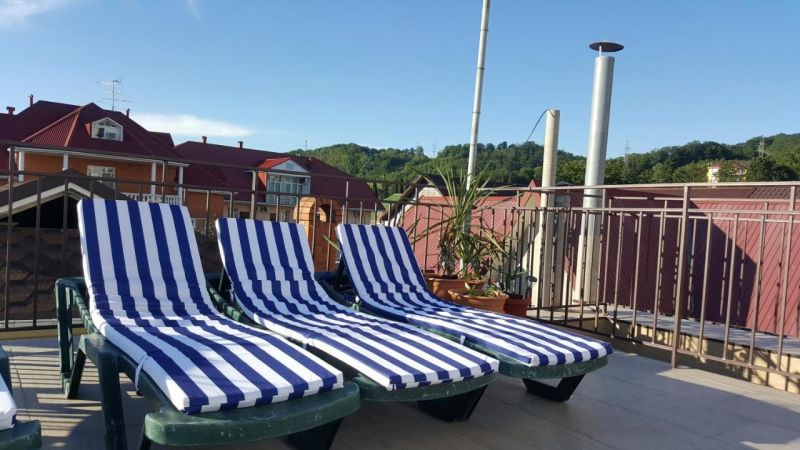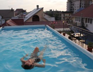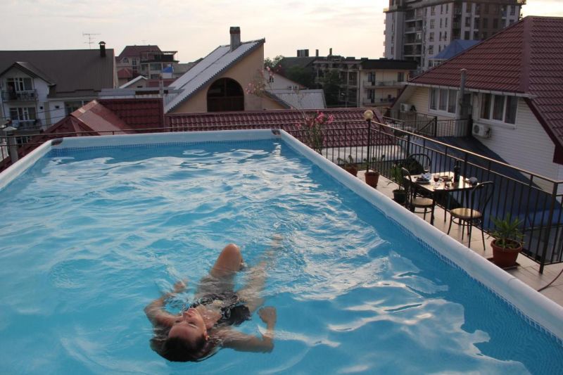 Для отдыхающих во дворике организована мангальная зона, кроме того, имеется общая кухня, где можно самостоятельно приготовить еду. К услугам гостей уличный бассейн с морской водой и подогревом, рядом терраса для загара с удобными мягкими шезлонгами.