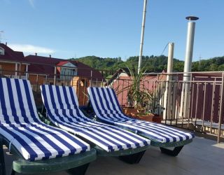 В паре минут ходьбы – городской оборудованный пляж. На галечном побережье открыты бары, кафе, работает пункт проката пляжных принадлежностей, есть раздевалки, навесы, лежаки и много водных развлечений.